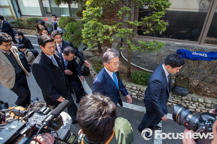 (서울=포커스뉴스) 문재인 전 더불어민주당 대표가 김종인 비상대책위 대표와 면담하기 위해 22일 오후 서울 종로구 김 대표 자택으로 이동하고 있다.