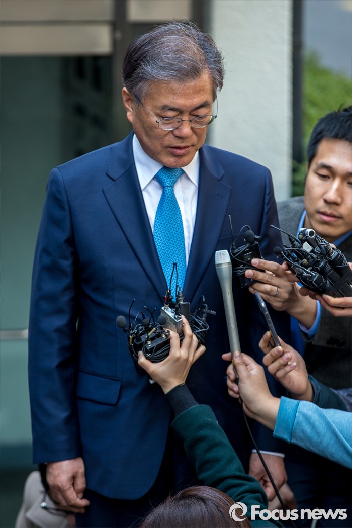 (서울=포커스뉴스) 문재인 전 더불어민주당 대표가 김종인 비상대책위 대표와 면담을 마친 22일 오후 서울 종로구 김 대표 자택을 나서며 취재진 질문에 답하고 있다.