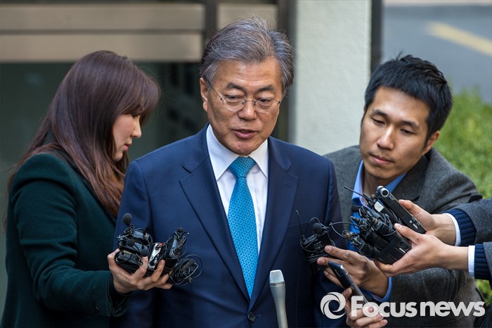 (서울=포커스뉴스) 문재인 전 더불어민주당 대표가 김종인 비상대책위 대표와 면담을 마친 22일 오후 서울 종로구 김 대표 자택을 나서며 취재진 질문에 답하고 있다.