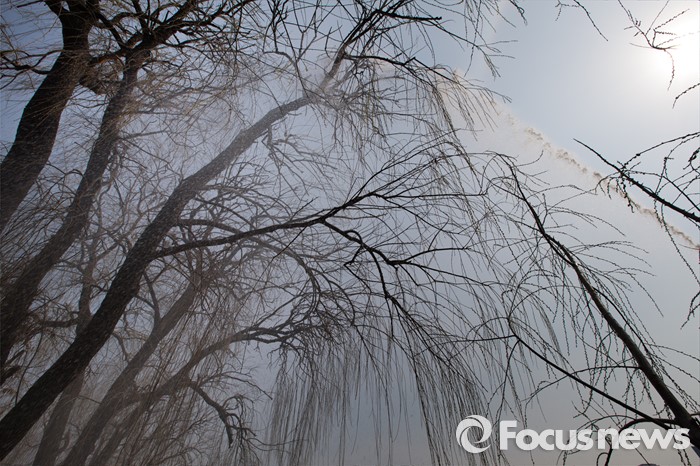 (서울=포커스뉴스) 22일 오후 서울 영등포구 밤섬에서 조류 산란기 전 버드나무에 쌓인 민물가마우지의 배설물 등을 청소하기 위해 물줄기가 뿌려지고 있다.