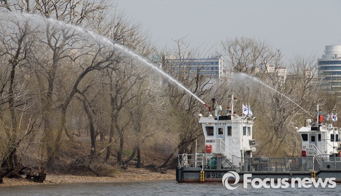 (서울=포커스뉴스) 22일 오후 서울 영등포구 밤섬에서 한강사업본부 관계자들이 조류 산란기 전 버드나무에 쌓인 민물가마우지의 배설물 등을 청소하고 있다.