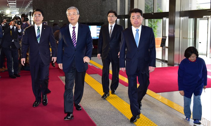 (서울=포커스뉴스) 20대 총선 비례대표 후보자 순번 등 논란으로 당무를 거부했던 김종인 더불어민주당 비대위 대표가 22일 오후 서울 여의도 국회에서 열린 비공개 회의에 참석하고 있다.