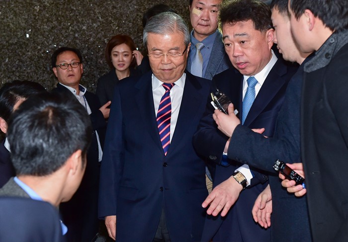 | △ 취재진 질문 받으며 나서는 김종인 대표 |