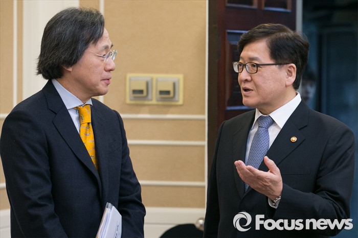 (서울=포커스뉴스) 정진엽(오른쪽) 보건복지부 장관과 정기석 질병관리본부장이 23일 오전 서울 여의도 국회에서 열린 지카바이러스 관련 긴급당정협의에 참석해 대화하고 있다.