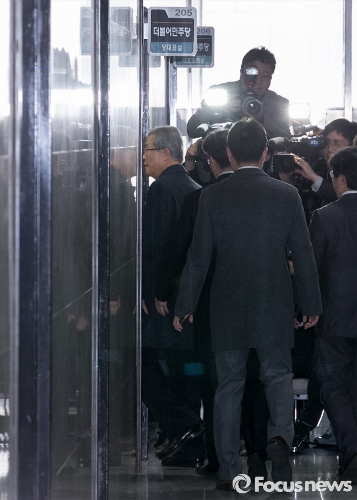 (서울=포커스뉴스) 사퇴여부와 관련 표현을 하지 않고 있는 김종인 더불어민주당 비대위 대표가 23일 오전 서울 여의도 국회에서 열리는 비공개 회의에 참석하고 있다.