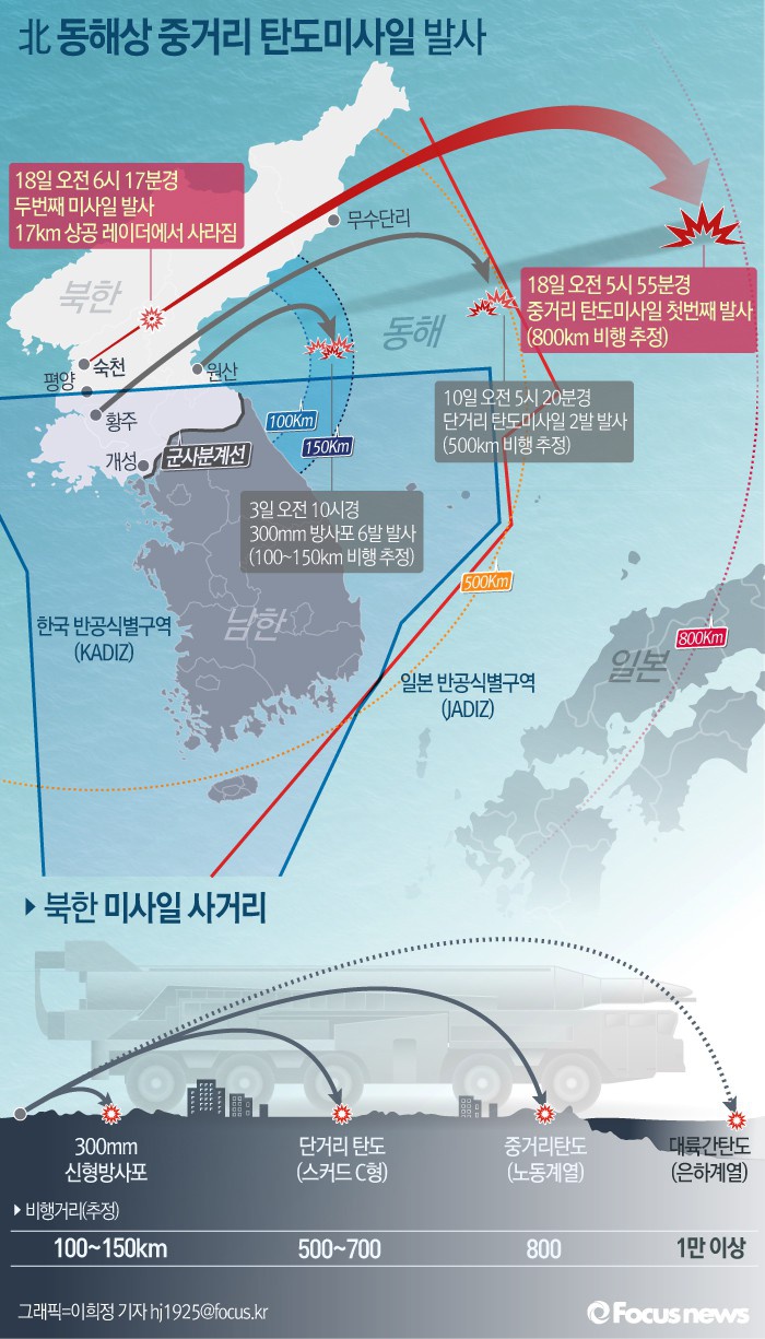 | △ [그래픽] 北 동해상 중거리 탄도미사일 발사(종합) |