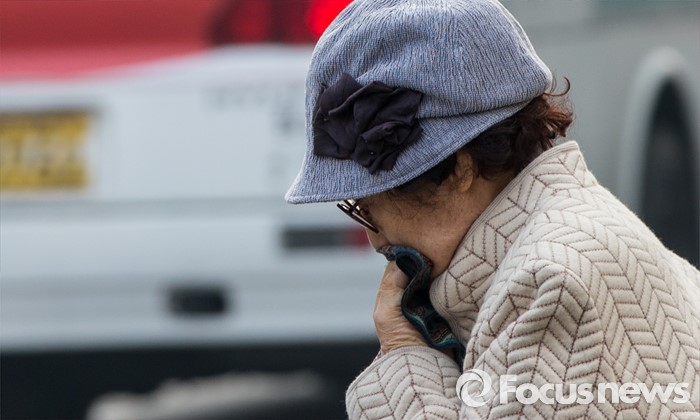 (서울=포커스뉴스) 꽃샘추위가 찾아온 23일 오전 서울 서초구 교대역 인근에서 두터운 옷차림의 시민이 손수건으로 입을 막고 있다. 기상청은 오후부터 기온이 점차 떨어지겠고 바람도 약간 강하게 불어 쌀쌀하겠으니 건강관리에 유의할 것을 당부했다.