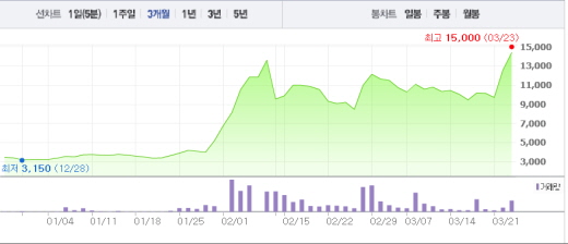 한국인 첫 감염자가 나왔다는 소식, 지카 바이러스가 성관계를 통해 감염될 수 있다는 두려움에 지카 바이러스 관련주 중 주목을 받는 것으로 보인다.