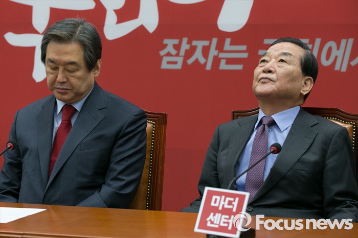 (서울=포커스뉴스) 김무성(왼쪽) 새누리당 대표와 서청원 최고위원이 23일 오전 서울 여의도 국회에서 열린 최고위원회의에 참석해, 생각에 잠겨 있다.
