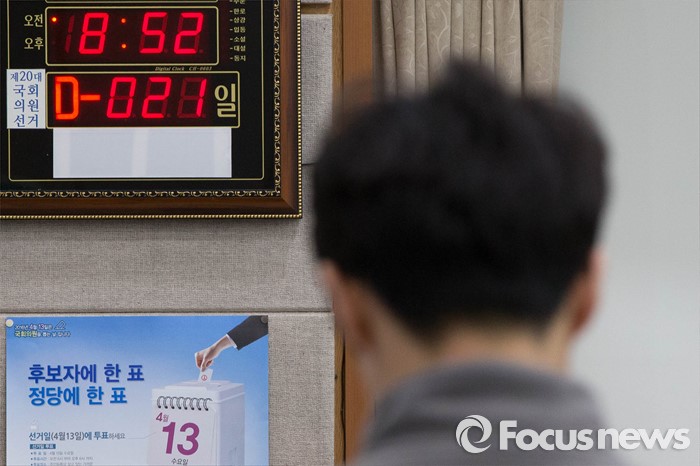 (과천=포커스뉴스) 20대 총선 후보자 등록을 하루 앞둔 23일 오전 경기도 정부 과천 청사 선거 상황실에서 근무자들이 업무에 열중하고 있다.