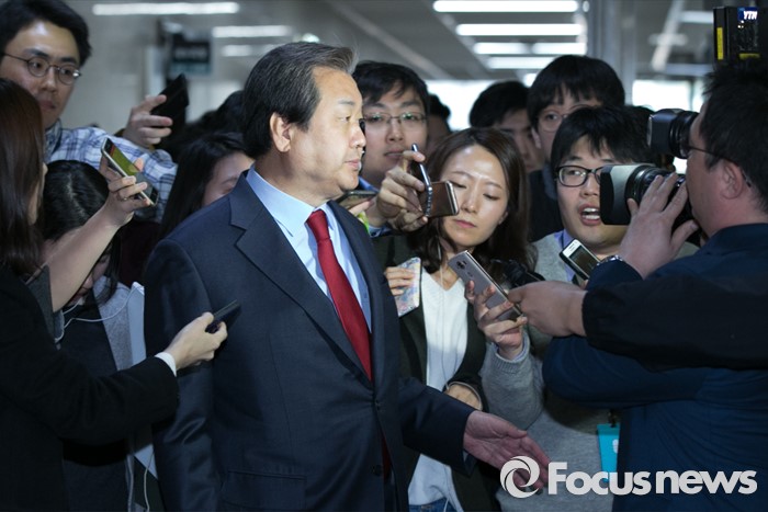 (서울=포커스뉴스) 김무성 새누리당 대표가 23일 오전 서울 여의도 국회에서 최고위원회의를 마친 뒤, 기자들의 질문을 들으며 밖으로 나가고 있다.