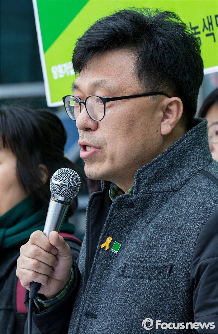 (서울=포커스뉴스) 23일 오후 서울행정법원 앞에서 열린 '청와대 상대 정보공개 소송 결과' 관련 기자회견에 참석한 하승수 녹색당 공동운영위원장이 판결 결과와 향후 대응방향에 대해 밝히고 있다.