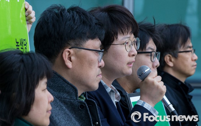 (서울=포커스뉴스) 23일 오후 서울행정법원 앞에서 열린 '청와대 상대 정보공개 소송 결과' 관련 기자회견에 참석한 이유진 녹색당 공동운영위원장이 판결 결과와 향후 대응방향에 대해 밝히고 있다.