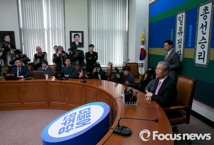 (서울=포커스뉴스) 김종인 더불어민주당 비대위 대표가 23일 오후 서울 여의도 국회에서 당 잔류와 관련 기자간담회를 하고 있다.