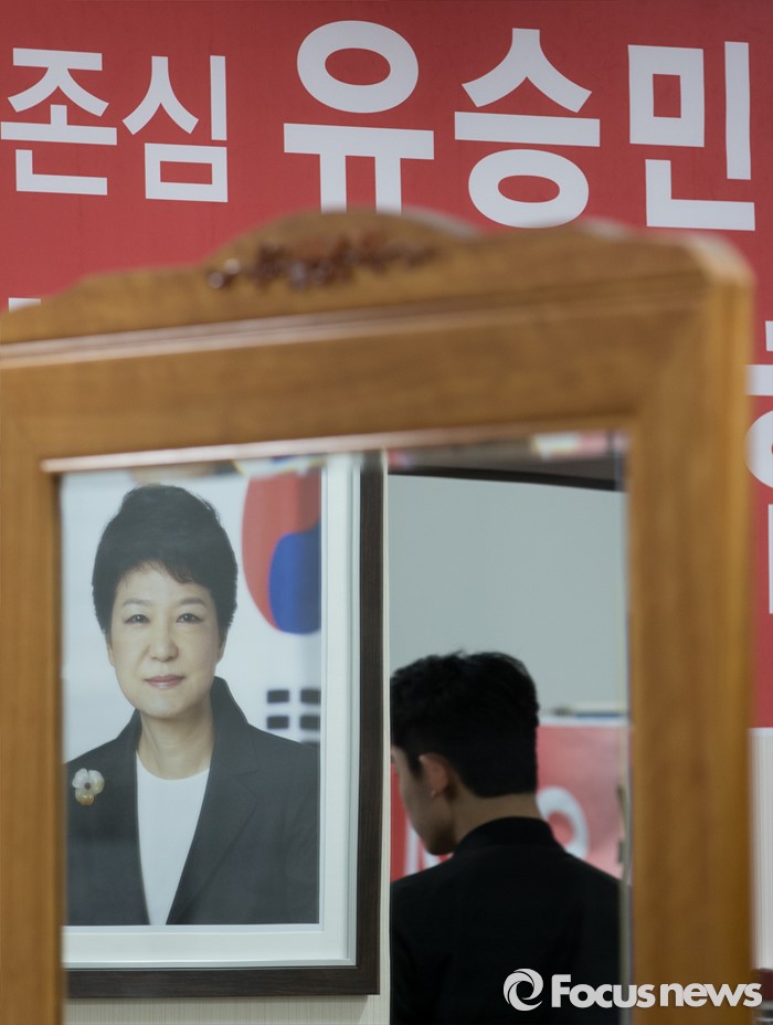 (대구=포커스뉴스) 20대 총선 후보자 등록일 하루 전인 23일 오후 대구 동구 유승민 의원 선거사무소에 박근혜 대통령의 사진이 걸려있다.