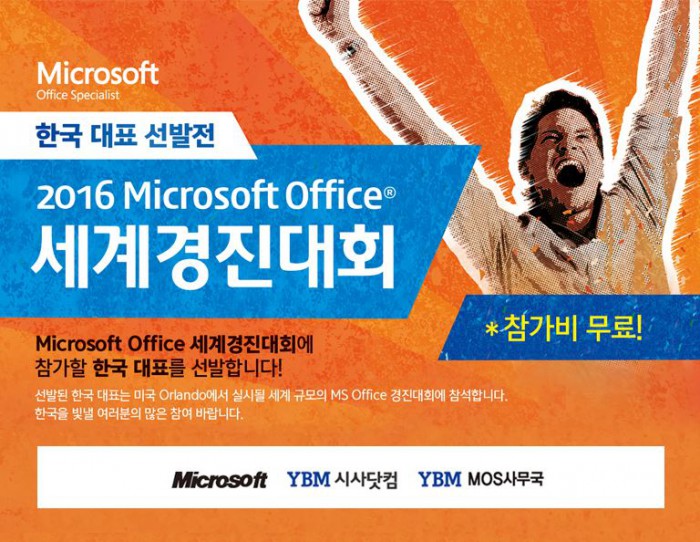 (서울=포커스뉴스) YBM은 '2016 Microsoft Office 세계경진대회(2016 MS오피스 세계경진대회)' 한국 대표 선발전을 오는 5월21일 서울 숭실대학교와 대전, 광주, 부산에 있는 YBM 직영센터에서 개최한다고 23일 밝혔다.