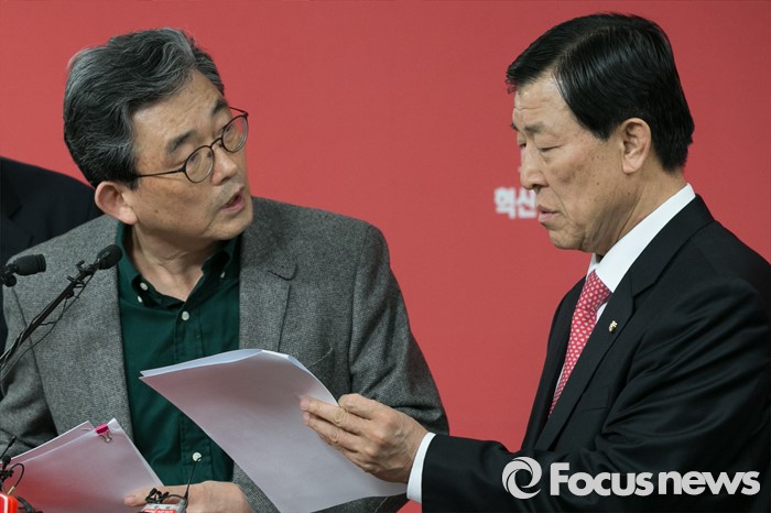 이날 기자회견을 연 여성공동행동 일동은 새누리당 중앙여성위원회·시도 여성위원회, 여성지방의원협의회 ·여성당원 등으로 구성돼 있다.이한구(왼쪽) 새누리당 공천관리위원장과 황진하 공천관리위원이 22일 오후 서울 여의도 당사 기자실에서 4.13 총선 비례대표 후보자 발표 중, 논의하고 있다. 2016.03.22 박철중 기자