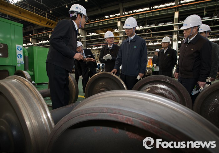 (대전=포커스뉴스) 최정호 국토교통부 2차관이 23일 오후 대전 대덕구철도차량정비단을 방문해 화차정비소를 점검하고 있다.
