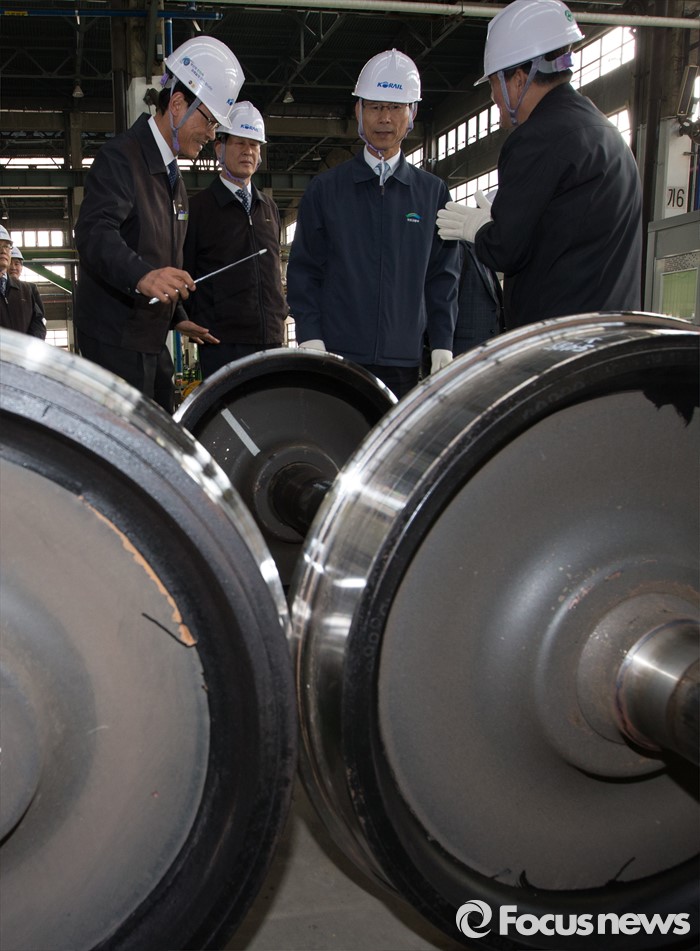 (대전=포커스뉴스) 최정호 국토교통부 2차관이 23일 오후 대전 대덕구철도차량정비단을 방문해 화차정비소를 점검하고 있다.