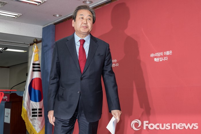 (서울=포커스뉴스) 김무성 새누리당 대표가 23일 오후 서울 영등포구 당사에서 유승민 의원의 공천과 관련해 긴급 기자회견을 마치고 이동하고 있다.