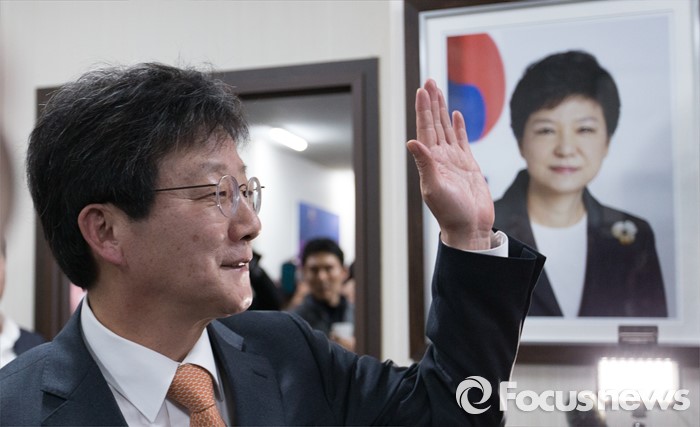 (대구=포커스뉴스) 유승민 의원이 23일 오후 대구 동구 용계동 사무소에서 새누리당 탈당 및 무소속 출마 기자회견전 지지자들과 악수를 나누고 있다.