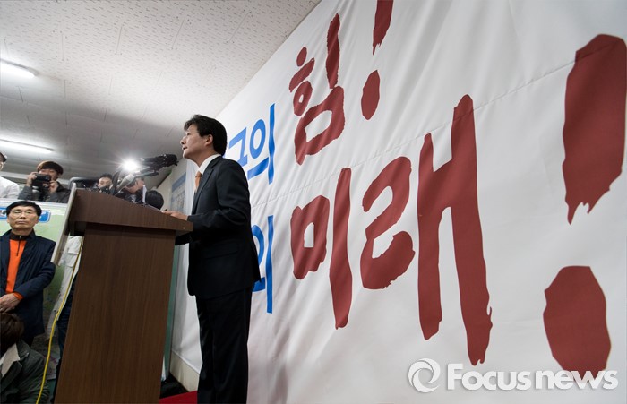 (대구=포커스뉴스) 유승민 의원이 23일 오후 대구 동구 용계동 사무소에서 새누리당 탈당 및 무소속 출마 기자회견을 하고 있다.