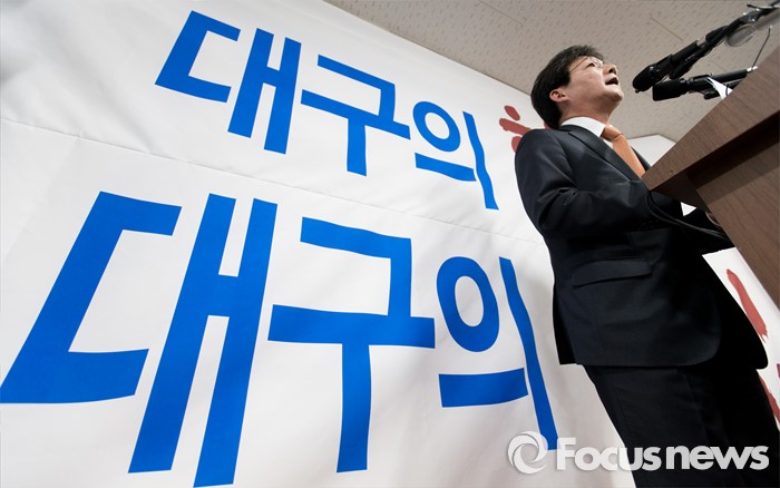 (대구=포커스뉴스) 유승민 의원이 23일 오후 대구 동구 용계동 사무소에서 새누리당 탈당 및 무소속 출마 기자회견을 하고 있다.