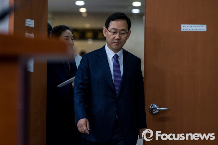 (서울=포커스뉴스) 20대 총선에서 새누리당 공천을 받지 못한 주호영(대구 수성을) 의원이 24일 오전 서울 영등포구 국회 에서 무소속 출마 발표를 하기 위해 정론관으로 들어서고 있다.