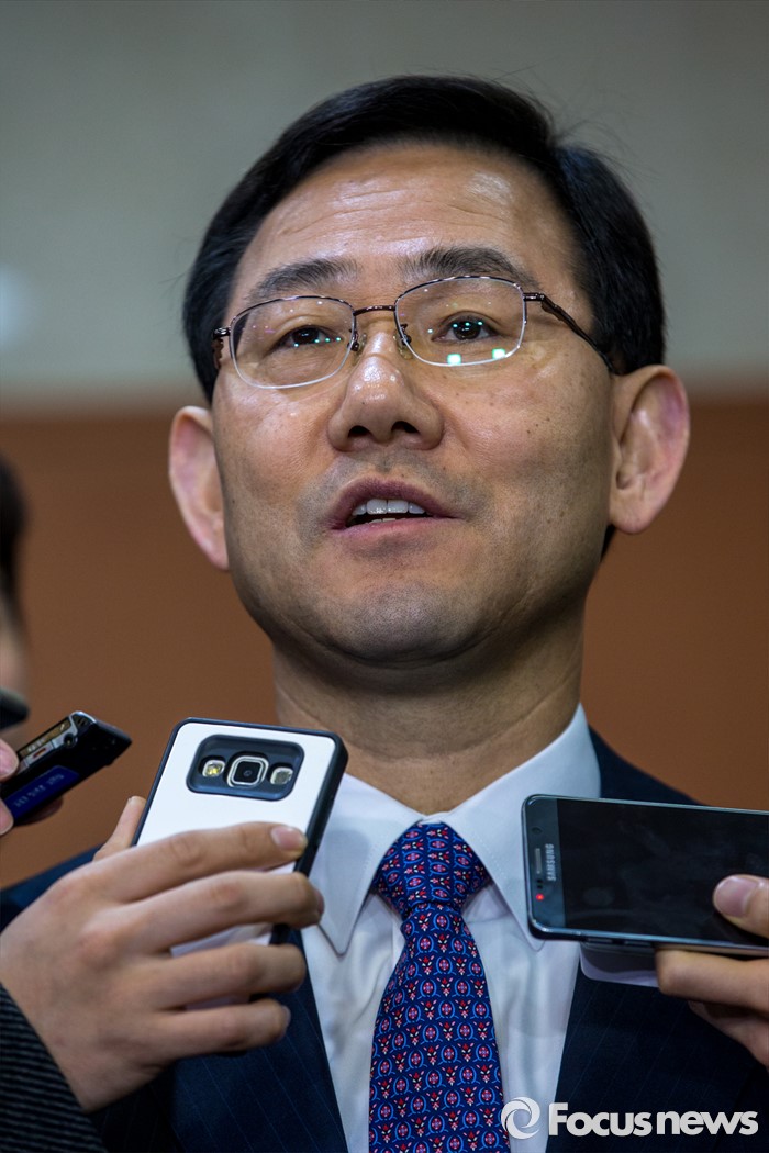 (서울=포커스뉴스) 20대 총선에서 새누리당 공천을 받지 못한 주호영(대구 수성을) 의원이 24일 오전 서울 영등포구 국회 에서 무소속 출마 발표를 마친 뒤 취재진 질문에 답하고 있다.
