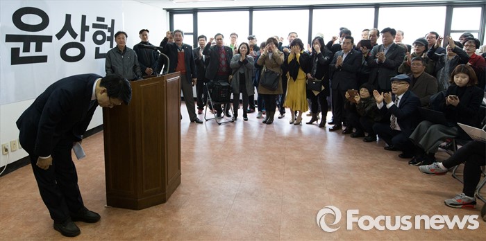 | △ 지지자들에게 사죄하는 윤상현 의원 |