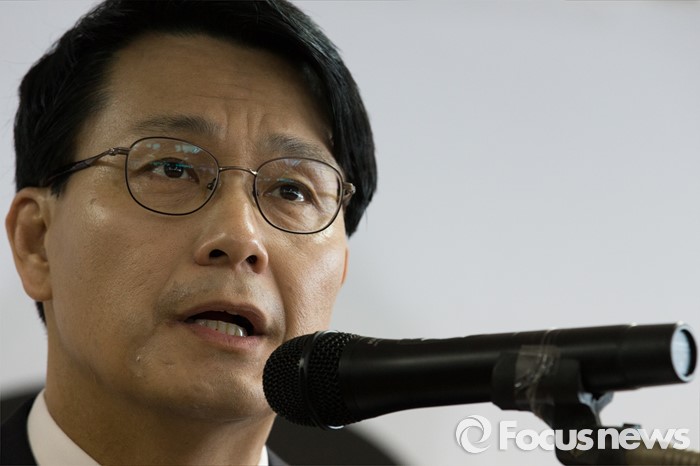 (인천=포커스뉴스) 새누리당을 탈당한 윤상현 의원이 24일 오전 인천 남구 지역구 사무실에서 무소속 출마 선언 기자회견을 하고 있다.