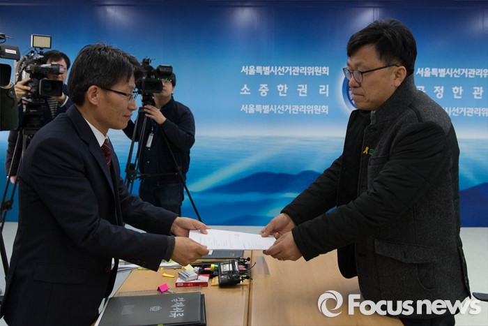 (서울=포커스뉴스) 20대 총선 후보자 등록이 시작된 24일 오전 서울 종로구 선관위에서 하승수 녹색당 대표가 등록 서류를 제출하고 있다.