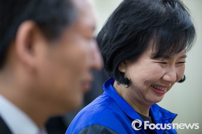 (서울=포커스뉴스) 20대 총선 후보자 등록이 시작된 24일 오전 서울 마포구 선관위에서 손혜원 더불어민주당 후보가 등록 절차를 밟고 있다.