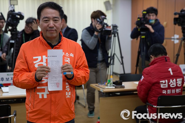 (서울=포커스뉴스) 20대 총선 후보자 등록이 시작된 24일 오전 서울 마포구 선관위에서 강승규 무소속 후보가 등록을 마치고 미소 짓고 있다.