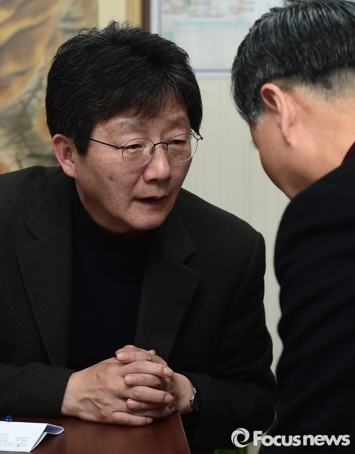 (대구=포커스뉴스) 전날 새누리당 탈당과 함께 무소속 출마를 선언한 대구 동구을 유승민 의원이 24일 오후 대구 동구의 사무소에서 지지자들과 만나 이야기를 나누고 있다.