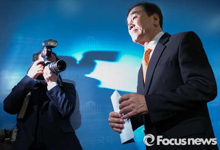 (서울=포커스뉴스) 새누리당을 탈당한 이재오 의원이 24일 오후 서울 여의도 국회 정론관에서 20대 총선 무소속 출마 기자회견을 마친 뒤 퇴장하고 있다.