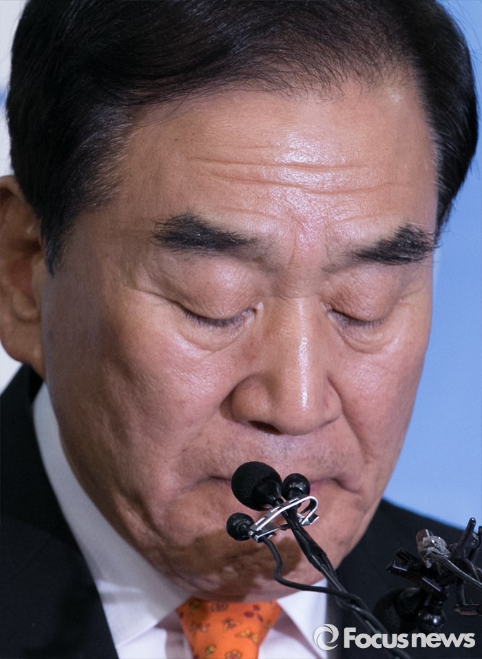 (서울=포커스뉴스) 새누리당을 탈당한 이재오 의원이 24일 오후 서울 여의도 국회 정론관에서 20대 총선 무소속 출마 기자회견을 하고 있다.