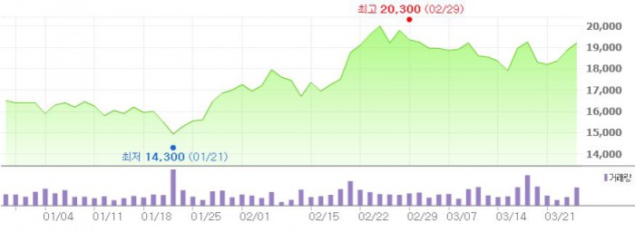 그는 "예정대로 3월말 M&A가 완료되면 진정한 거인으로 거듭날 것"이라고 덧붙였다.최근 3개월간 쌍용양회 주가 추이 <그래픽출처=네이버>
