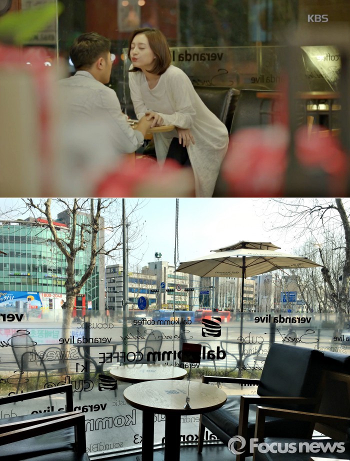 '구원커플'의 데이트 장면은 달콤커피 양재점에서 촬영됐다. 실제로 달콤커피 양재점에는 '태양의 후예' 포스터가 곳곳에 붙어 있었다. '구원커플'이 앉은 자리를 찾는 데는 오랜 시간이 걸리지 않았다. 두사람이 앉은 자리에는 안내판이 놓여 있었다. "여기가 바로 '태양의 후예' 구원커플 자리지 말입니다!"라는 문구가 적혔다.