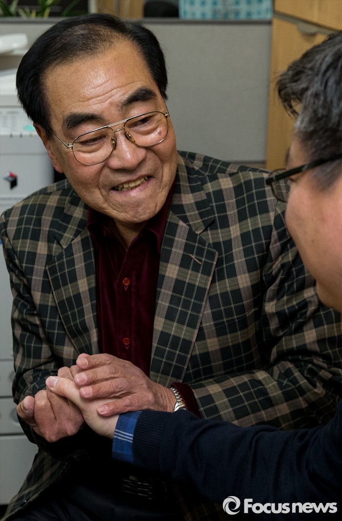 (서울=포커스뉴스) 지난 1983년 7살의 나이에 스웨덴으로 입양을 갔던 김세진(Daniel sei jin Magnusson·41) 씨가 경찰의 도움으로 가족을 찾았다. 24일 오전 서울 남대문경찰서 민원실에서 김 씨가 생부 김용환(75)씨와 손을 잡고 있다. 김 씨는 한국의 가족을 찾기 위해 지난 3월 16일남대문경찰서 민원실을 찾았고, 경찰은 김 씨가 가지고 온 재적등본, 친권포기각서 등의 자료를 바탕으로 친부와 누나들을 찾았다.