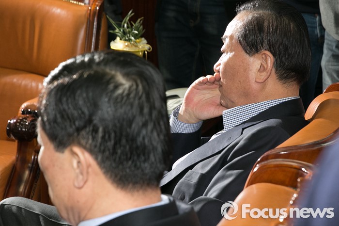 (서울=포커스뉴스) 서청원(오른쪽) 새누리당 최고위원이 24일 오후 서울 여의도 국회 새누리당 원내대표실에서 긴급 소집된 최고위원회 간담회를 마친 뒤, 생각에 잠겨 있다.