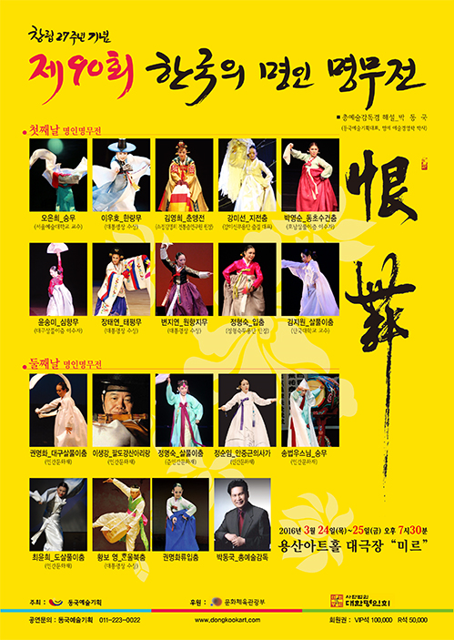 문화체육관광부와 대한명인회가 후원하는 '제90회 한국의 명인 명무전'에서는 문화융성의 초석을 위한 민족의 한과 설움을 춤으로 승화한 한무를 선보인다. 박동국 동국예술기획대표가 총예술감독겸 해설을 맡았다.