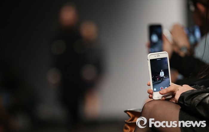(서울=포커스뉴스) 24일 오후 서울 중구 동대문 디자인 플라자에서 열린 '2016 F/W 헤라 서울패션위크'의 '서리얼 벗 나이스' 쇼의 관람객들이 휴대전화를 이용해 모델을 촬영하고 있다.