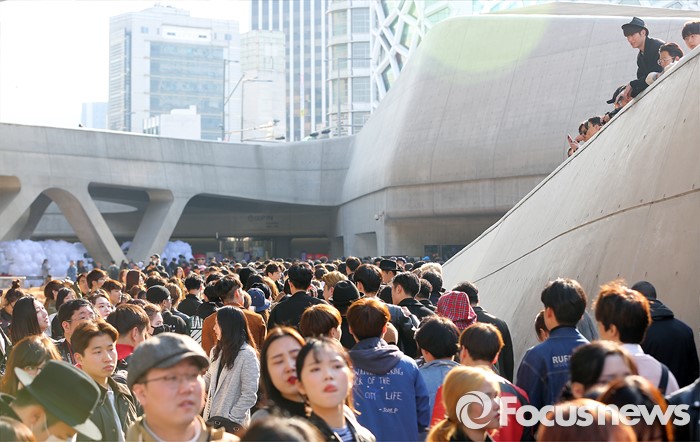 (서울=포커스뉴스) 24일 오후 서울 중구 동대문 디자인 플라자에서 열린 '2016 F/W 헤라 서울패션위크'에 참여한 시민들이 주변을 살펴보고 있다.