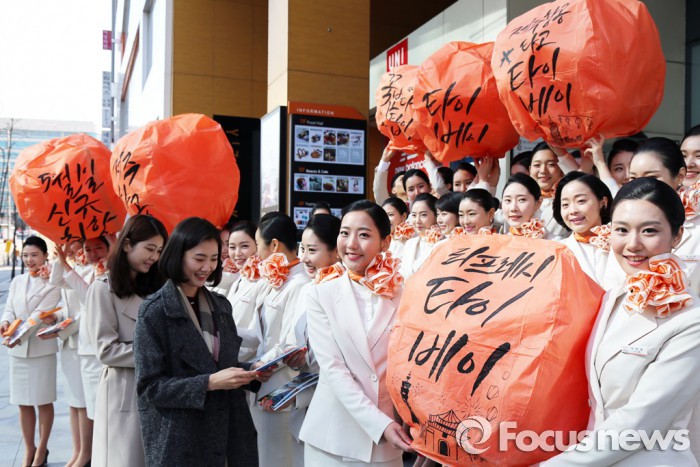 올해 입사한 신입승무원과 경력직 신규입사자 32명은 신규 취항하는 인천-타이베이 노선을 홍보하기 위해 직접 거리에 나섰다. 이들은 풍등을 들고 홍보모델 김수현의 얼굴이 그려진 볼펜과 타이베이관광청이 제공하는 타이베이 가이드북을 시민들에게 돌렸다.