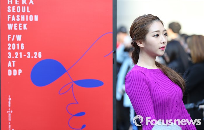 (서울=포커스뉴스) 24일 오후 서울 중구 동대문 디자인 플라자에서 열린 '2016 F/W 헤라 서울패션위크'에 참여한 한 모델이 포즈를 취하고 있다.
