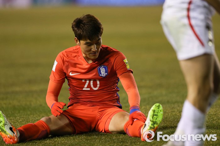 (안산=포커스뉴스) 24일 오후 경기도 안산 와스타디움에서 열린 2018 러시아 월드컵 아시아 2차 예선 7차전 대한민국 대 레바논 경기에서 장현수가 넘어져 있다.