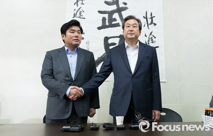 그러나 김 대표는 24일 부산에서 "내일 오전에 서울에 올라가 오후에 당사 대표실 가서 당무를 보도록 하겠다"고 말해 '대표 유고' 상황이라는 빌미를 원천 차단했다.당 공천관리위원회의 공천안에 반발해 최고위원회의 소집을 거부한 김무성(오른쪽) 새누리당 대표와 설득에 나선 원유철 원내대표가 24일 오후 부산 영도구 김 대표 사무실에서 만나 악수를 나누고 있다. 2016.03.24 김인철 기자