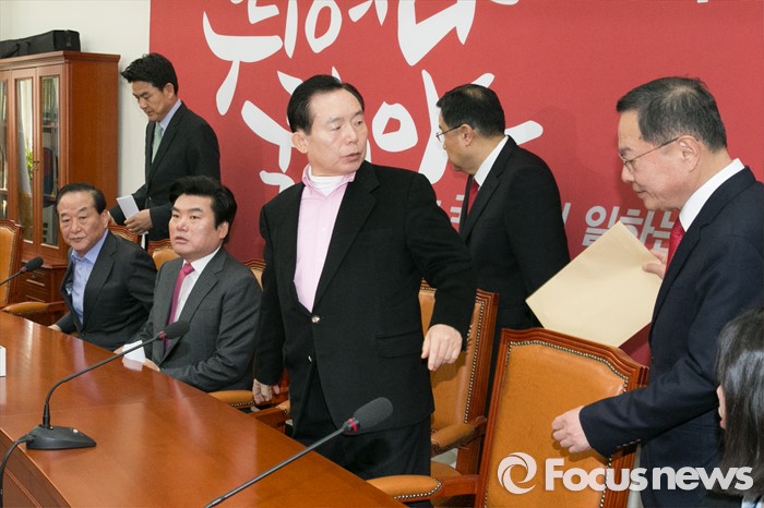 (서울=포커스뉴스) 원유철(왼쪽 세번째) 원내대표를 비롯한 새누리당 최고위원들이 25일 오전 서울 여의도 국회 원내대표실에서 열린 최고위원회 간담회에 입장해, 자리에 앉고 있다.