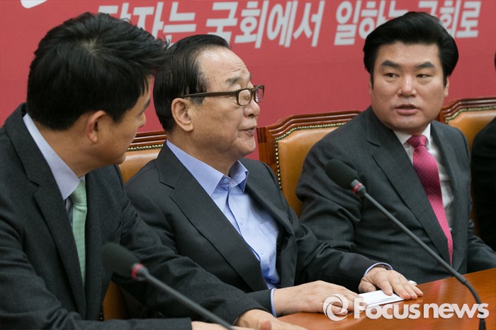 (서울=포커스뉴스) 원유철(오른쪽) 원내대표와 서청원(가운데), 김태호 최고위원이 25일 오전 서울 여의도 국회 원내대표실에서 열린 최고위원회 간담회에 참석해, 대화하고 있다.